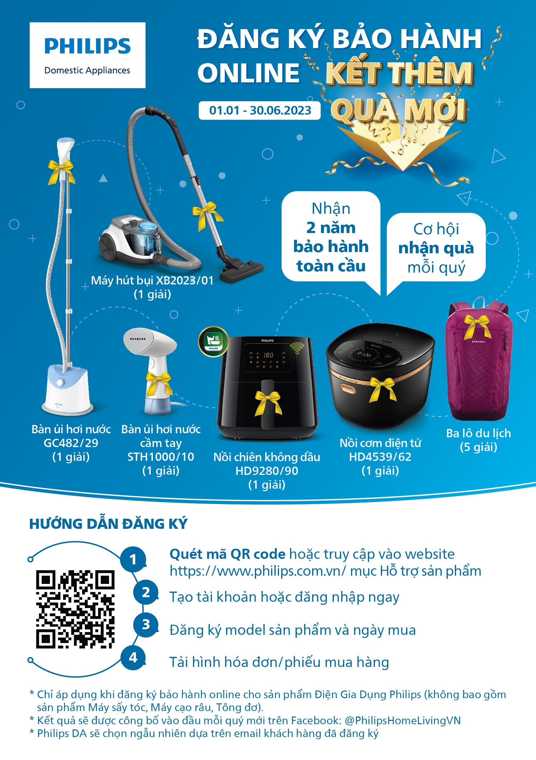 Nếu bạn đã được thông báo rằng bạn có thể kéo dài bảo hành, trước tiên bạn cần có tài khoản My Philips. Bạn có thể đăng nhập hoặc tạo một tài khoản tại đây. Sau đó, bạn có thể đăng ký sản phẩm của bạn. Hãy chuẩn bị sẵn sản phẩm khi đăng ký vì bạn sẽ cần cung cấp mã kiểu sản phẩm.
